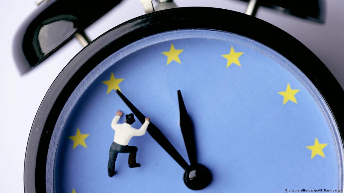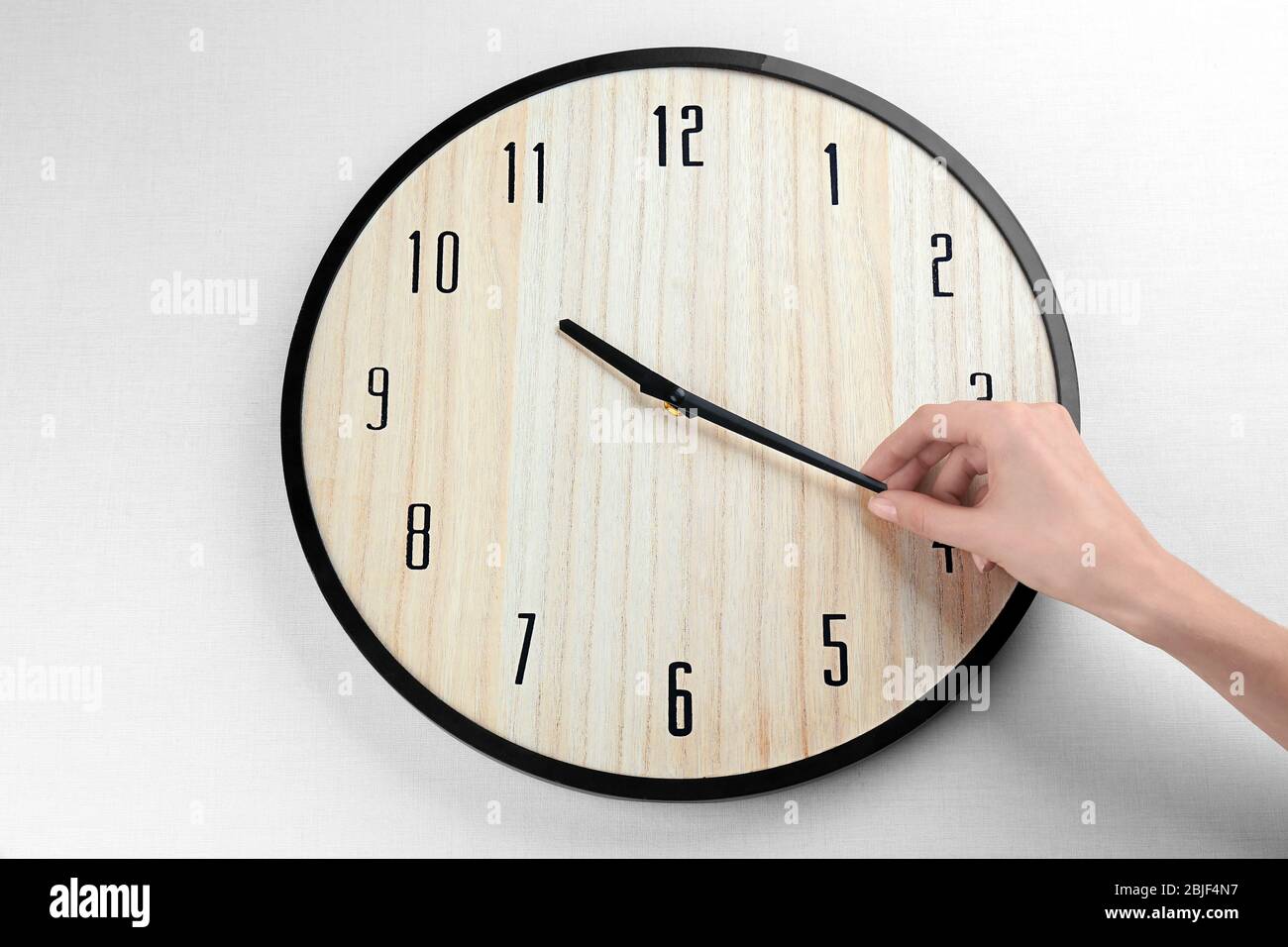 Female Hand Change Time On Big Wall Clock Stock Photo Alamy